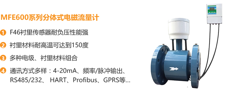 針對(duì)供水管網(wǎng)的特點(diǎn),我們推薦使用MFE600系列分體式電磁流量計(jì):